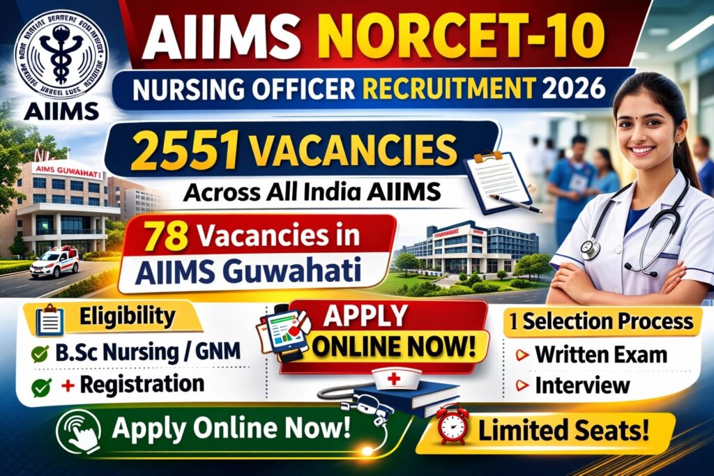 AIIMS NORCET 10 Recruitment 2026: 2551 Nursing Officer Posts Announced | 78 Vacancies in AIIMS Guwahati February 26, 2026 / Government