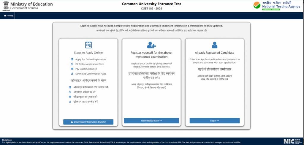 Candidates should refer to the CUET (UG) 2026 Information Bulletin available on: